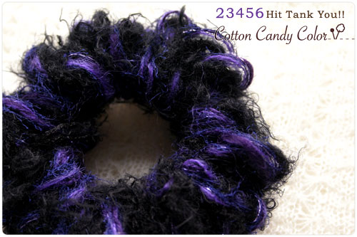 以前載せた指編みシュシュと別に、シックな黒と紫の指編みシュシュと、