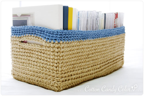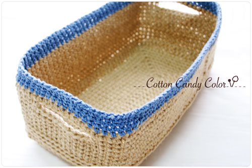 CD入れる麻カゴがイイとのことで、長方形のカゴを編みあみです。