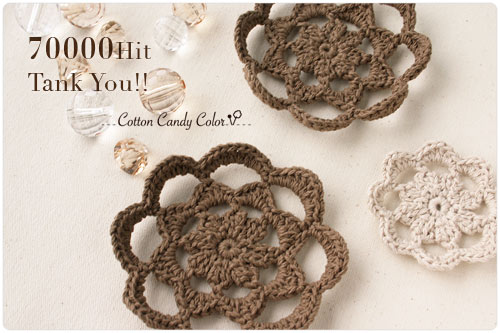 細い糸ではないので繊細さには欠けるかもしれませんが、コットンだと可愛らしさとほっこり感がでますね〜同じ糸でコースターも編んでみました☆