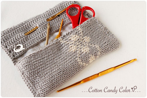 フタ部分を方眼編みにしておく事で、編みあみ道具、
