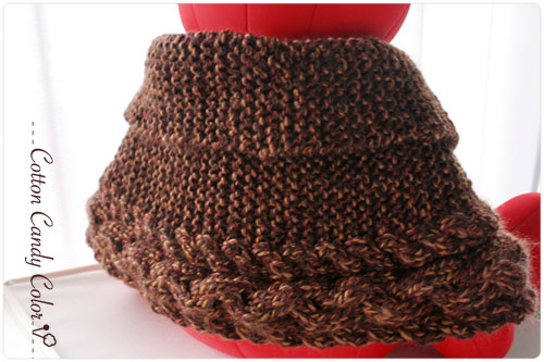 端に縄編みがクルクルしてるのが個人的にツボです。