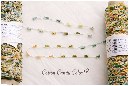 ストレートヤーンと数段ごと交互に編んでぼーだーにしたりとか…