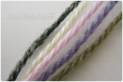 (↓写真左から)グレー、アイボリー、トリアノン、淡パープル、モスグリーンの5色購入。